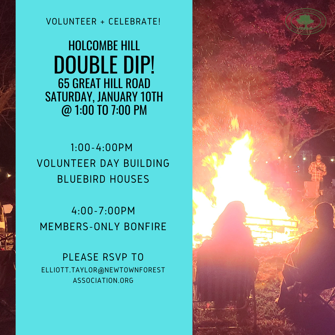 Help the NFA give local critters a new home on Saturday, January 10th! We will be building bird and bat houses in the Holcombe HIll (heated!) garage, to then be placed across multiple NFA preserves. All materials will be provided but there is a cap of 20 people. Please rsvp to elliott.taylor@newtownforestassociation.org